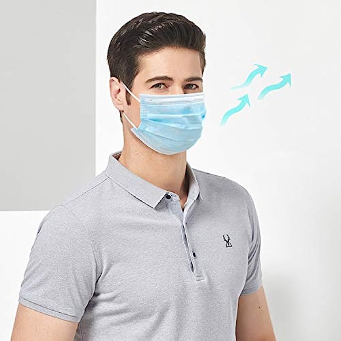 200pcs Breathable Disposable Blue Face Masks,3-Ply Non-woven Comfortable Face Masks,Suitable for Prevent Droplets,Industrial Applications,Production Workshop,Dust Exposure.