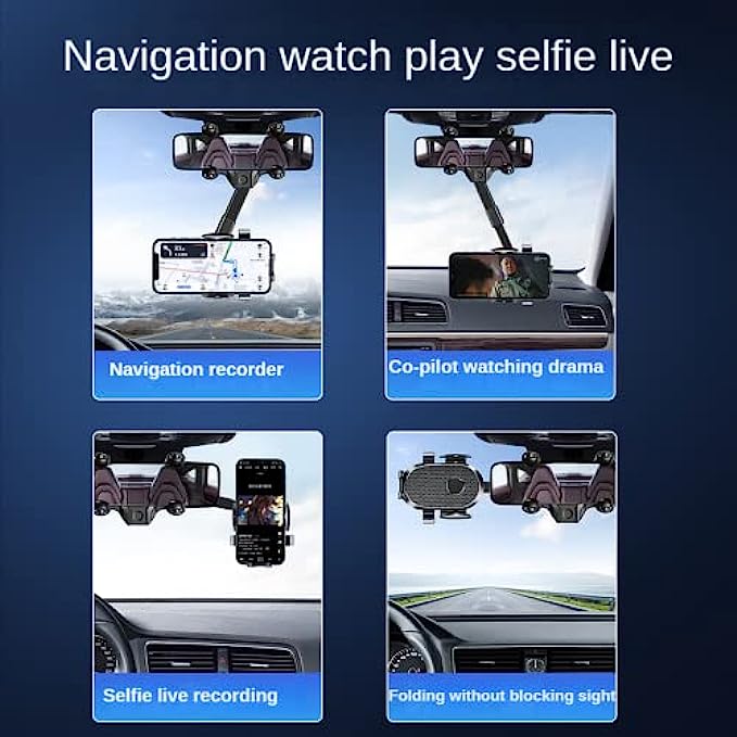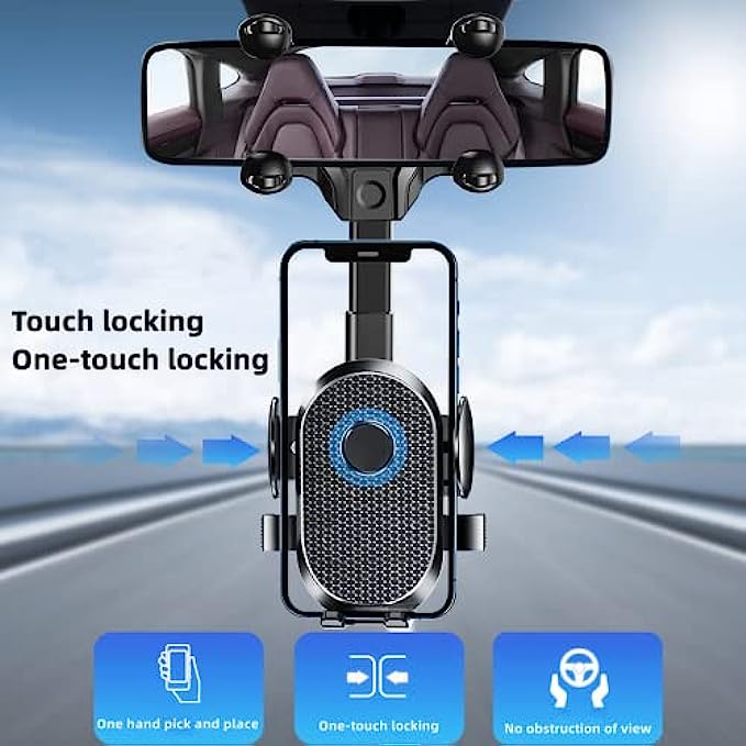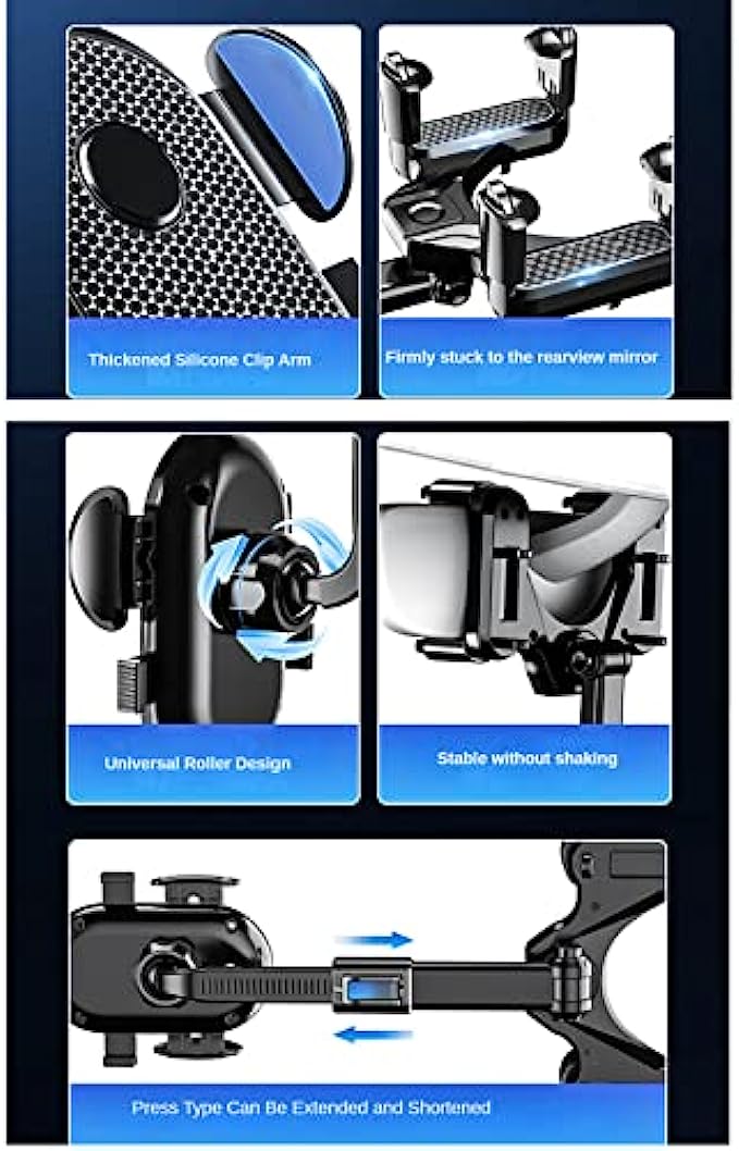 Car Rearview Mirror Phone Holder,360° Rotating Telescopic Adjustable Multifunctional Car Phone Holder, Equipped with Air Outlet Bracket Accessories, Compatible with All Mobile Phones.